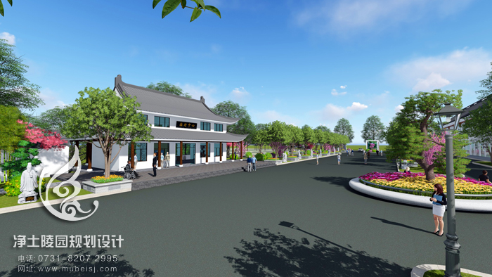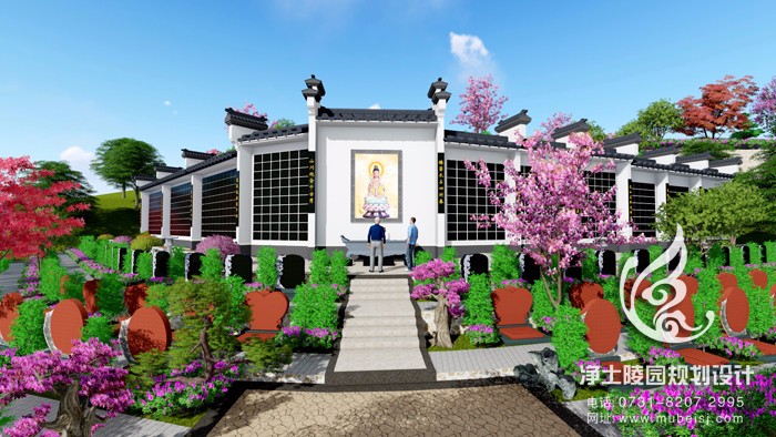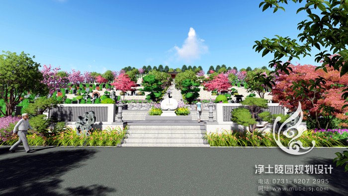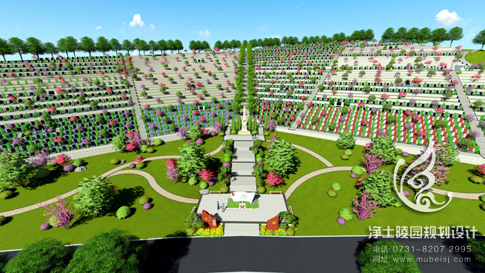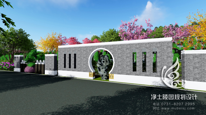 墓前有梁灘河由南向北環繞,遠有縉云山脈為屏遮。鳥瞰整個公墓,一面臨水,三面環山,形似飛鳳,勢如騰龍,層林疊翠,氣勢恢宏。來龍有根,見水則止,前有寬闊明堂和河流環繞,是一座福澤境地。