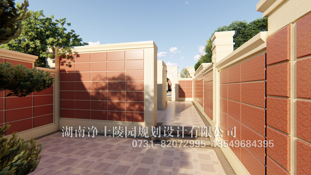 壁葬是將骨灰盒嵌在墻壁內(nèi)的喪葬方式,墻體正面分布著井字形的壁葬格,大小可放入骨灰盒。格位口用石材封死,石材外表面就當(dāng)作墓碑,刻上碑文。一堵壁葬墻可安置幾十乃至幾百個骨灰盒,存放量極大,又節(jié)約土地。壁葬的建筑形式十分豐富,有回廊式的,有亭子式的,有四合院式的還有多層式的等等。